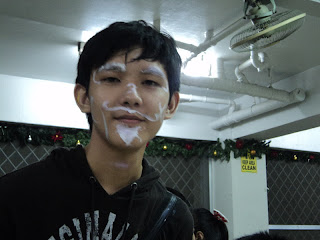 Kanina, actually, mula kahapon pa nga e, may play ung elem. At.. Kami nila Trisha, Koji, Niki, Nick Paul, Yaya, at ako ung maglalagay ng face paint / make-ups sa mga bata. At isa ung napakaduming proseso.